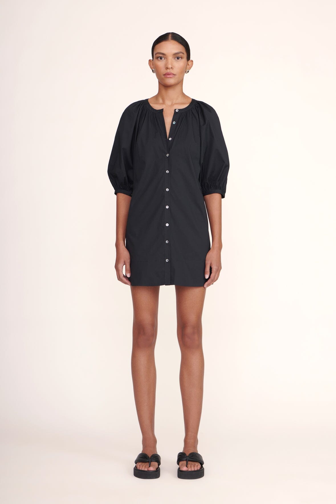 A mini version of our classic button down dress. The Mini Vincent features half-length balloon sleeves and is constructed out of a cotton poplin fabric.