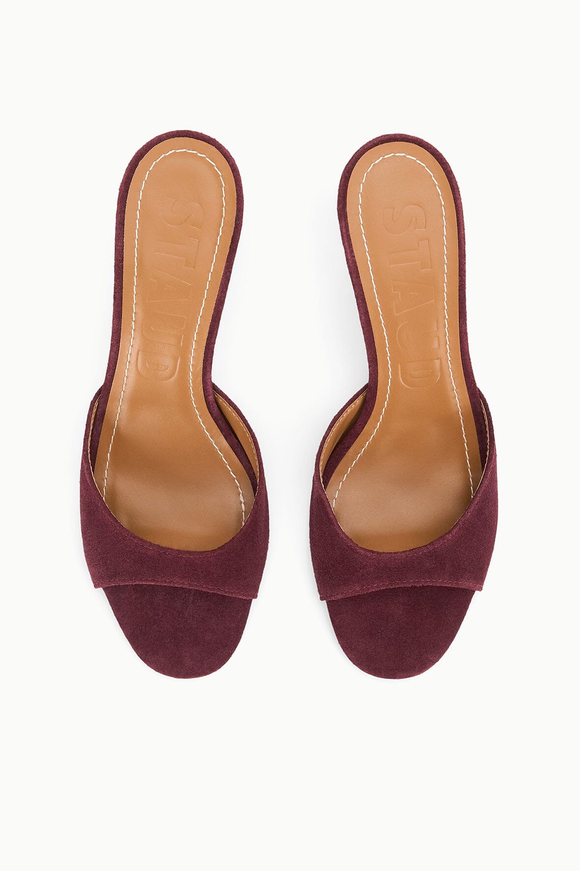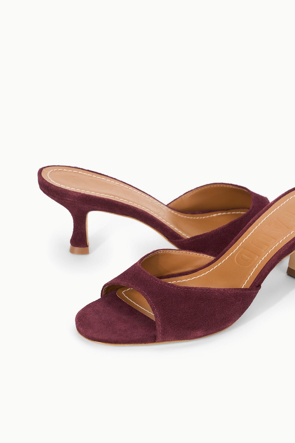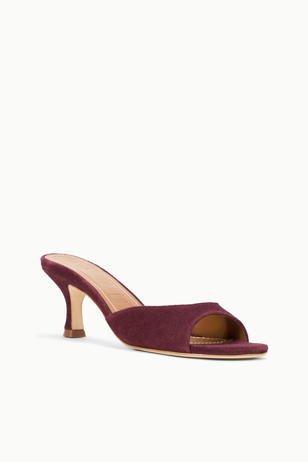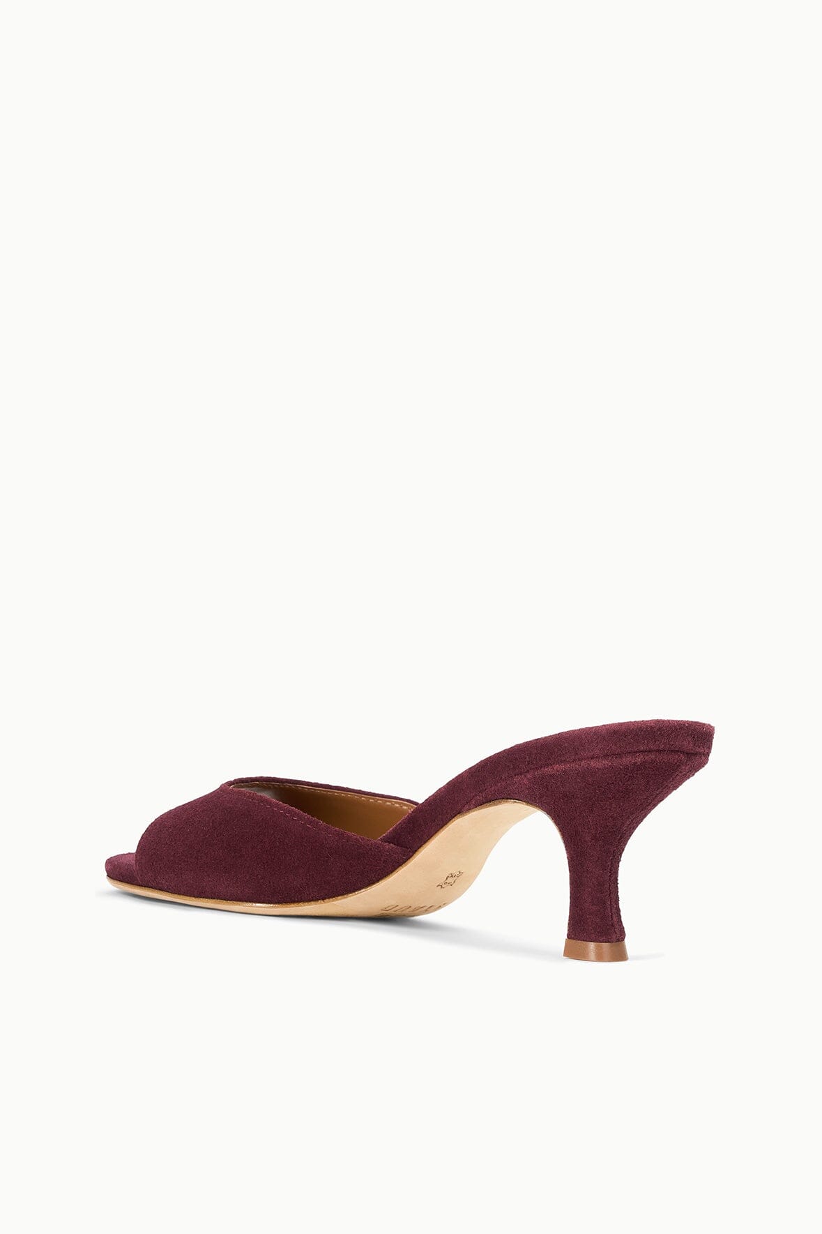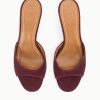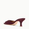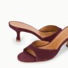 An open-toe mule featuring a suede upper, the Brigitte is an essential kitten heel for versatile dressing.