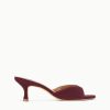 An open-toe mule featuring a suede upper, the Brigitte is an essential kitten heel for versatile dressing.