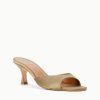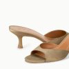 An open-toe mule featuring a satin upper, the Brigitte is an essential kitten heel for versatile dressing.