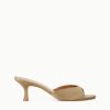 An open-toe mule featuring a satin upper, the Brigitte is an essential kitten heel for versatile dressing.