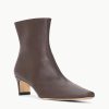 A nappa leather ankle boot, this style features a pointed rectangular toe and a blade heel. The Wally Ankle boot features a side zip closure.