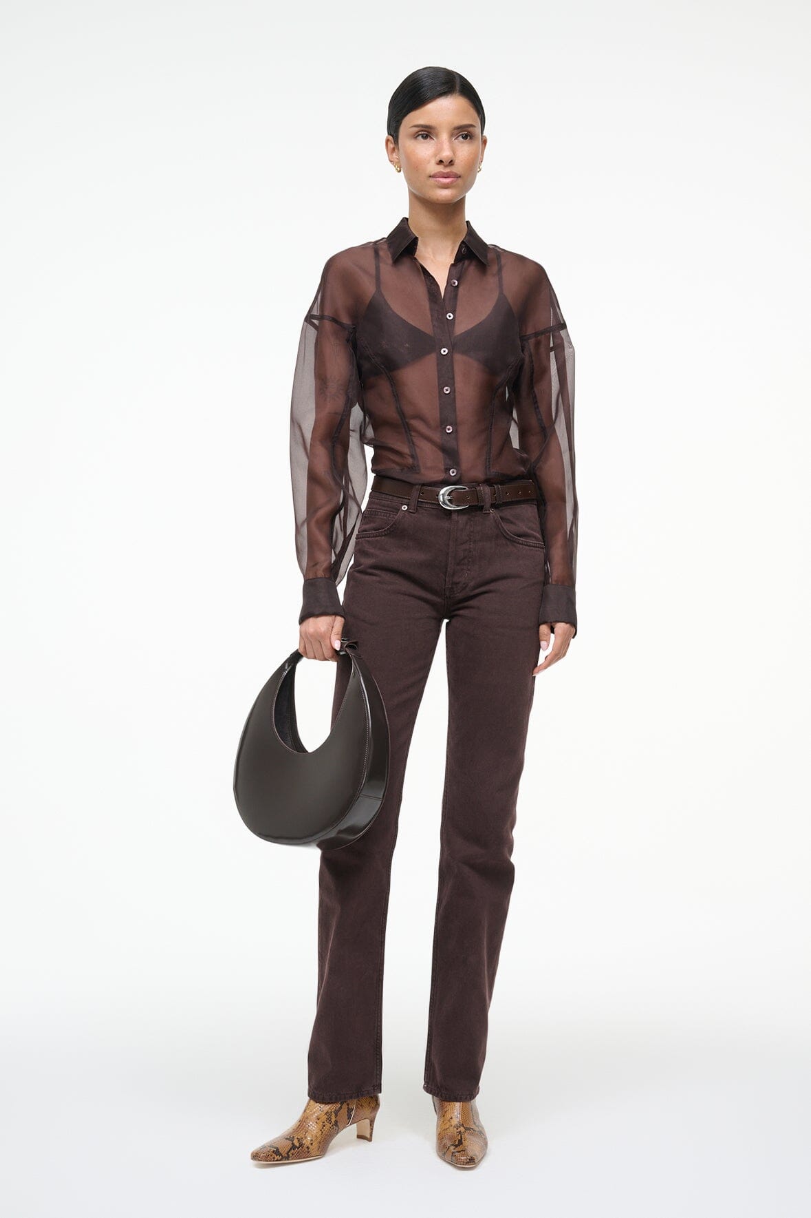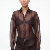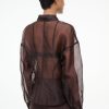 The Aida Top is a sheer button down blouse crafted in silk organza.