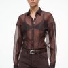 The Aida Top is a sheer button down blouse crafted in silk organza.