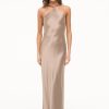The Cadence Dress is one of our best-selling evening dress silhouettes, featuring a halter neckline with beaded straps. The dress is crafted in satin and has a hidden back zipper.