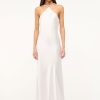 The Cadence is a floor length slip dress featuring a halter neckline with beaded straps. This dress is crafted in satin and has a hidden back zipper.