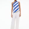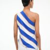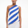 The Esme Top is a one shoulder sleeveless jersey top, featuring an asymmetrical hem, in our seasonal rugby stripe.