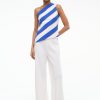 The Esme Top is a one shoulder sleeveless jersey top, featuring an asymmetrical hem, in our seasonal rugby stripe.
