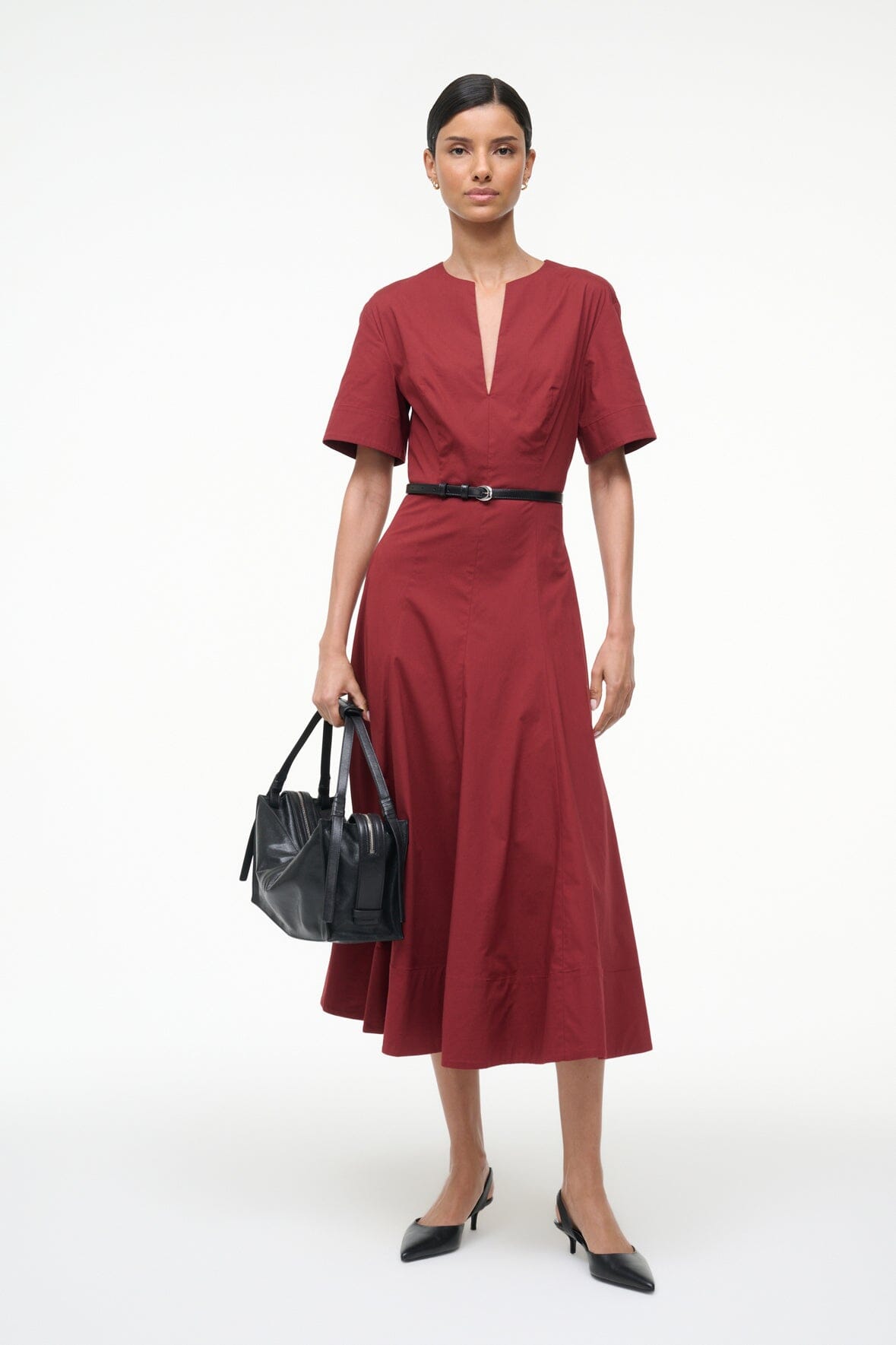 The Frances dress is a flattering split neck poplin dress with short sleeves and an a-line skirt. This style is crafted from our signature cotton poplin fabric.