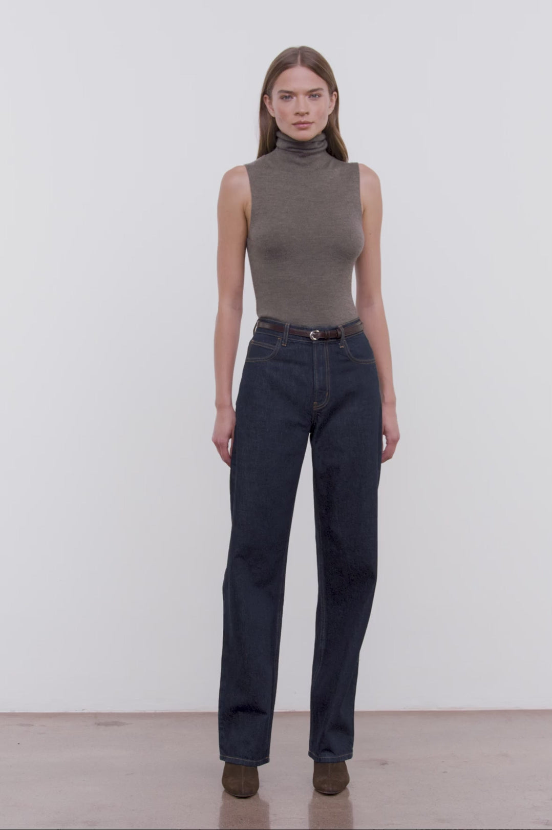 The Leo Jean is a straight-meets-barrel silhouette with a flattering high-rise waist. Its outseam curves at the knee, then tapers to a slim ankle. Cut from Italian denim with a cinching V-shaped yoke at the back, it’s complete with antique-finish hardware and logo-embroidered zip fly.