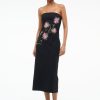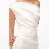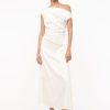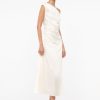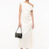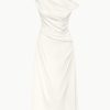 The Phare Dress features a draped off-the-shoulder neckline, a fitted waist and an ankle-grazing length. Updated in our stretch silk, this dress is perfect for a special occasion.