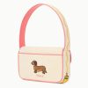 New in for Summer, our latest limited edition Tommy features a hot dog on the front and playful dachshund on the back slip pocket. The Tommy Bag is a hand-beaded shoulder bag with vegan leather piping. This style features a single flap closure, inner zip pouch and a pocket on the back.