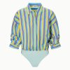 A cotton poplin shirt bodysuit, the Traverse takes the guesswork out of styling an oversized shirt by offering a fixed rolled cuff and adjustable elastic bottom.
