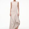 A sleeveless dress in cotton nylon, the Viola Dress features a draped skirt which creates a dramatic asymmetrical hem.