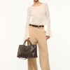 The Maude Satchel is the perfect everyday bag from our Maude family. This style is a soft and slouchy satchel, featuring rounded handles and a removable wide shoulder strap. It has a front pocket that is perfect for a phone and has a zip closure. Made out of a slightly shiny crinkle leather.