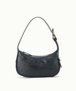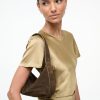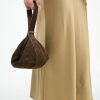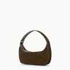 The Demy Shoulder Bag is a chic convertible bag that can be worn over the shoulder or hand held. It features signature hardware clasp on the strap to convert the shape to a handheld pouch. This style features a suede body, a top zipper, and signature hardware.