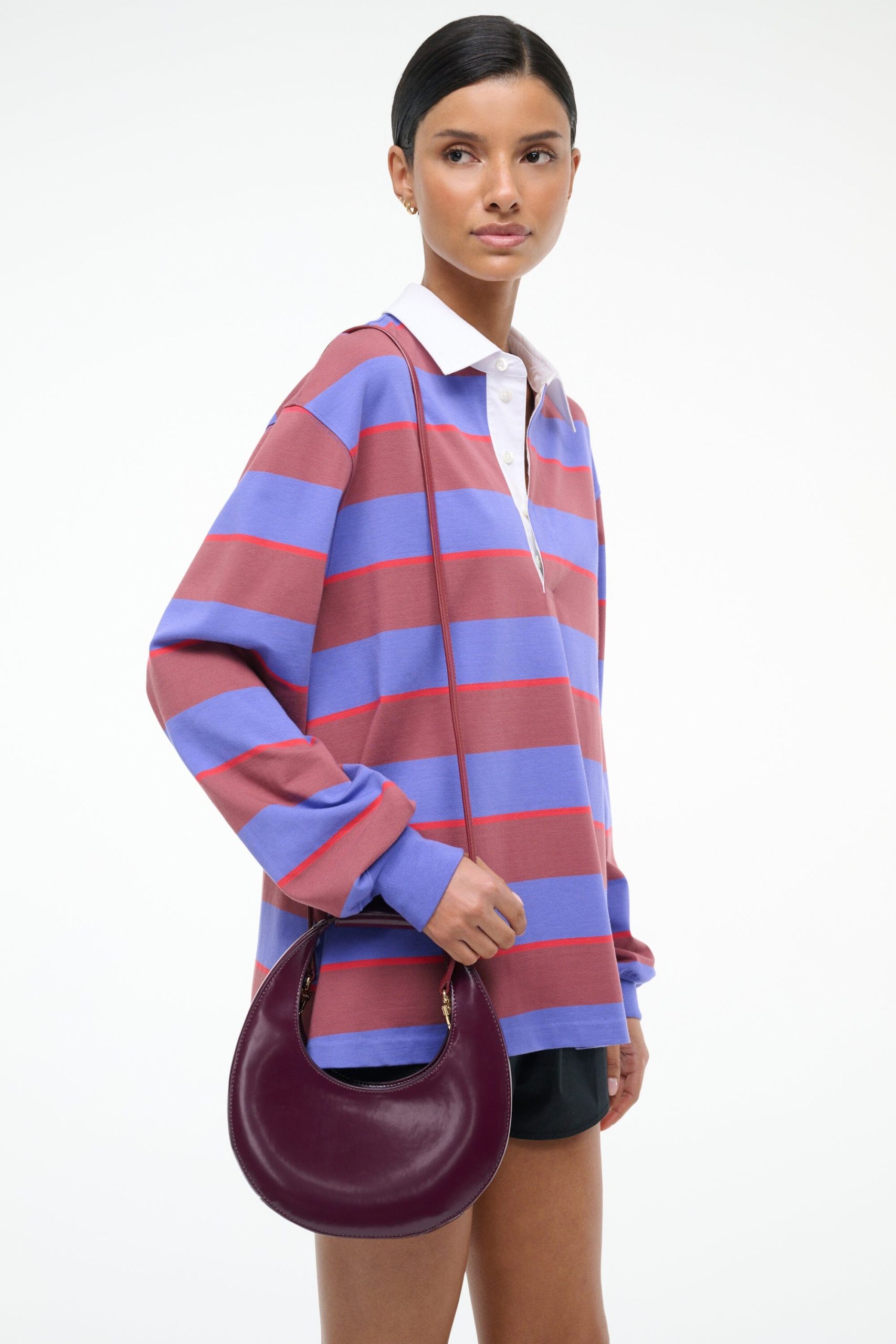 The Mini Moon Bag is an update to our classic crescent moon shape in leather with inner suede lining and a magnetic closure to hold your essentials. This bag comes with a removable crossbody strap.